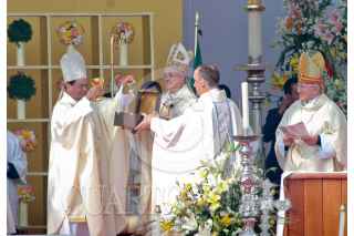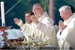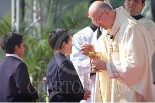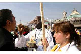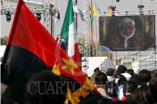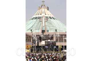 MÉXICO D.F., 18ENERO2009.- Miles de participantes presenciaron la misa que se realizo en la explanada de la Basílica de Guadalupe para clausurar los trabajos del VI Encuentro Mundial de las Familias. FOTO: RODOLFO ANGULO/CUARTOSCURO.COM