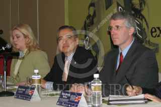 MÉXICO, D.F., 19ENERO2009.- En conferencia de prensa con Sarah Hoch, Directora del Festival Internacional de Cine Expresión en Corto; Sergio Rodriguez, Secretario de Desarrollo Turistico de Guanajuato y Robert Fitchett, Embajador Adjunto del Reino Unido, se dio a conocer la convocatoria "Expresión en Corto 2009" para la produccion cinematografica en cortometraje, Documental y Largometraje Ópera Prima. FOTO: ENRIQUE ORDÓÑEZ/CUARTOSCURO.COM