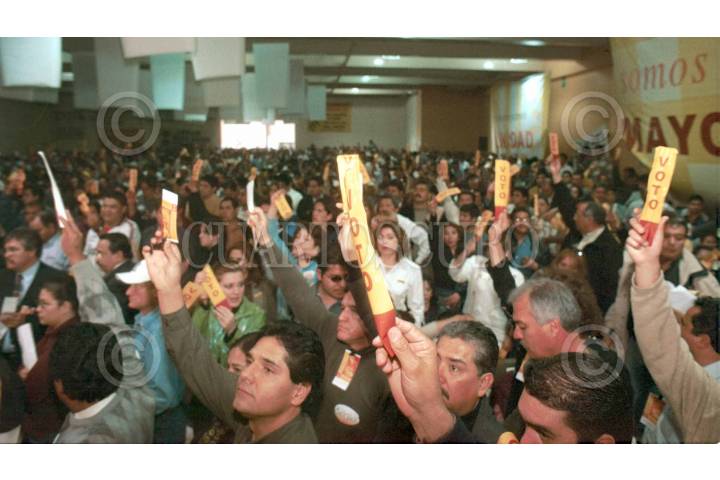 Simpatizante de Jesús Ortega durante la Convención para definir la planilla que se enfrentará a Rosario Robles por la dirigencia nacional del PRD. FOTO:Oswaldo Ramírez/CUARTOSCURO.COM