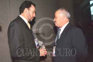 Los dirigentes del PAN del D.F. y Nacional , José Luis Luege Tamargo del D.F. y Luis Felipe Bravo Mena, aprovechan el receso de la reunión ordinaria de ese partido, donde se definieron, entre otros puntos, a los aspirantes de este partido; y en donde Bravo Mena aspira nuevamente la Presidencia. FOTO: Juan Pablo Zamora/CUARTOSCURO.COM