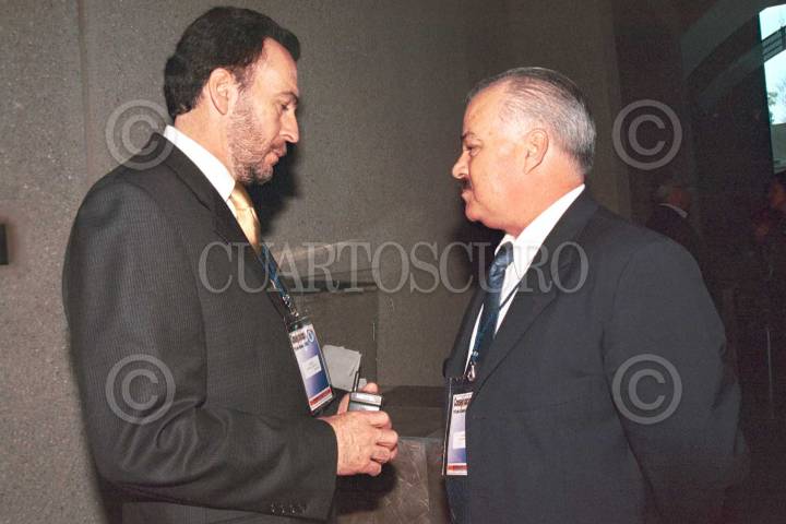 Los dirigentes del PAN del D.F. y Nacional , José Luis Luege Tamargo del D.F. y Luis Felipe Bravo Mena, aprovechan el receso de la reunión ordinaria de ese partido, donde se definieron, entre otros puntos, a los aspirantes de este partido; y en donde Bravo Mena aspira nuevamente la Presidencia. FOTO: Juan Pablo Zamora/CUARTOSCURO.COM