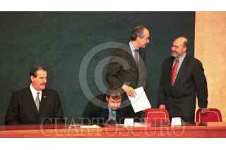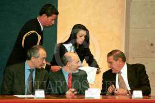 Francisco Gil Díaz, Eduardo Sojo y Javier Usabiaga durante la presentación de la Estrategia para el Fortalecimiento y Desarrollo de la Banca Popular, en la residencia oficial de los Pinos. FOTO: Victoria Valtierra/CUARTOSCURO.COM