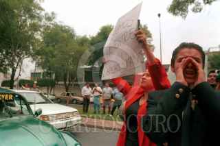 Familiares de funcionarios implicados en la desaparición de pruebas en el caso Carrola, bloquearon Av. Arcos de Belen para pedir la entrada de los visitadores de Derechos Humanos en el el proceso que se inicia. FOTO: Francisco Rodríguez/CUARTOSCURO.COM