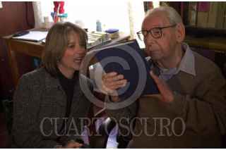 La periodiosta Adriana Malvido y el fotógrafo Manuel Alvarez Bravo, quien cumplirá el próximo 4 de febrero 100 años . Foto: Pedro Valtierra/Cuartoscuro