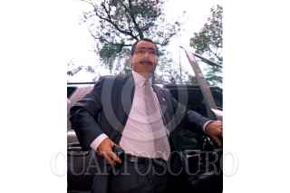 Sergio Estrada Cajigal, gobernador del estado de Morelos, antes de entrar a la reunión con gobernadores panistas y el presidente de México, Vicente Fox, en Los Pinos. En la reunión que mantuvieron, propusieron el diseño de una "reingeniería de gastos" dentro del Presupuesto de la federación para evitar la dualidad entre los programas federales y estatales. FOTO: Eunice Adorno/CUARTOSCURO.COM