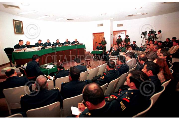 En la segunda sesión del consejo, donde se dictaminará una sentencia de culpabilidad o inocencia, mostró a un Quirós con un aparato al oído por sus problemas de escucha y a un Acosta adusto, a ratos sonriente, que en principio saludó de beso a su familia. FOTO: Oswaldo Ramírez/CUARTOSCURO.COM