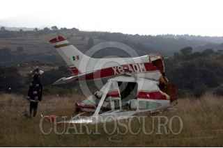 El piloto Carlos Díaz resultó lesionado, luego de que la avioneta Cessna bimotor que tripulaba se desplomó tras el despegue en el aeropuerto de Atizapan. FOTO: Gilberto Molina/CUARTOSCURO.COM