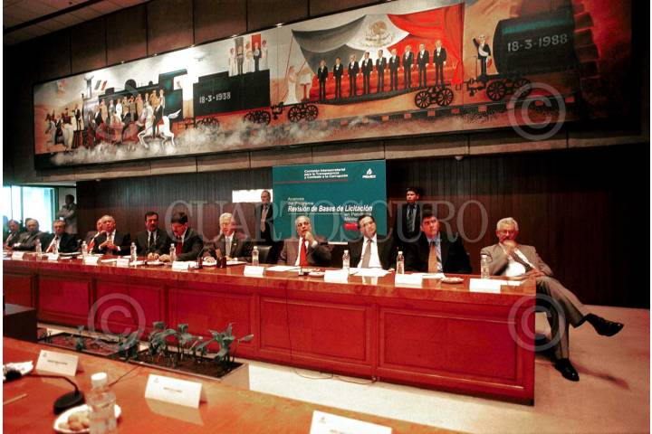 Raúl Muñoz Leos y Francisco Barrio, presidieron la presentación del programa para la transparencia 2002, en Pemex. FOTO: Victoria Valtierra/CUARTOSCURO.COM