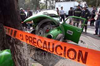Un taxi chocó contra un árbol, con saldo de un lesionado y una mujer que falleció en el percanse. Los hechos ocurrierón en eje 5 norte frente al deportivo Reynosa en la delegación Azcapotzalco. FOTO: Gilberto Molina/CUARTOSCURO.COM
