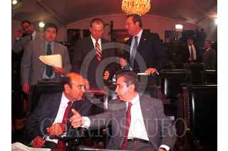 Los senadores Humberto Roque Villanueva, durante la sesión ordianria en la Cámara Alta, en el cual se habló de decretar la autonomia orgánica técnica y presupuestal de Pemex y la CFE y transferir al Senado la facultad de nombrar a sus directores generales fueron las iniciativas de ley. FOTO: Eunice Adorno/CUARTOSCURO.COM