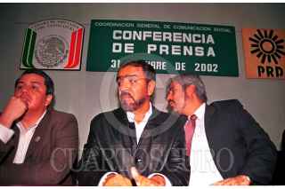 Hugo Camacho y José Narro, diputados del PAN y PRD, acompañan a Francisco Hernández Juárez (al centro), líder de la Unión Nacional de Trabajadores; en conferencia de prensa para mejorar servicios médicos de la Asociación Sindical de Pilotos Asiociados (ASPA), perteneciente a esta agrupación sindical. FOTO: Juan Pablo Zamora/CUARTOSCURO.COM