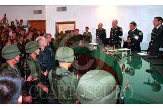 La acusación por la que fueron declarados culpables Quirós y Acosta es porque realizaron el transporte aéreo de droga para el Cártel de Juárez, organización para la que supuestamente utilizaron a un grupo de inteligencia con un equipo sofisticado de intercepción satelital. Los defensores de los Generales siempre cuestionaron que dichos equipos satelitales nuca aparecieron ni fueron encontrados por la Procuraduría Militar, la parte acusadora en este juicio. FOTO: Victoria Valtierra/CUARTOSCURO.COM