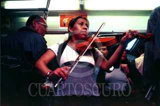 Marcela Ortiz, trabaja como músico ambulante en los vagones del metro, para poder sostener sus estudios, actualmente cursa el cuarto semestre de la carrera de Etnomusicologia de la UNAM. FOTO: Susana Navarrete/CUARTOSCURO.COM