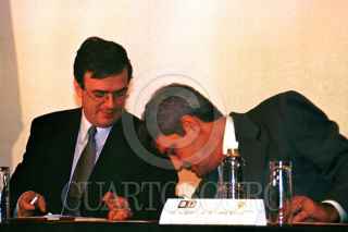 La policia del Distrito Federal contará con un equipo oficial de futbol soccer asi lo informó su titular Marcelo Ebrard y Alberto de la Torre, presidente de la Federación Mexicana de Futbol, durante la fiirma del acuerdo para tal hecho. FOTO: Susana Navarrete/CUARTOSCURO.COM