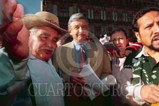 Andrés Manuel Lopéz Obrador, jefe de gobierno del Distrito Federal, entregó creditos de vivienda en lote familiar; durante un acto celebrado en el zócalo capitalino fue recibido por campesinos que lo felicitaron por su desempeño de su gobierno. FOTO: Sandra Perdomo/CUARTOSCURO.COM