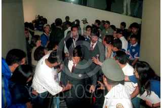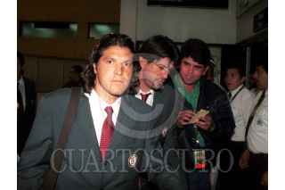 Pablo Galdames y José Saturnino Cardoso son escoltados por elementos de la Policía Federal para llegar a reunirse con sus esposas y dar una conferencia de prensa. FOTO: David Bolaños/CUARTOSCURO.COM