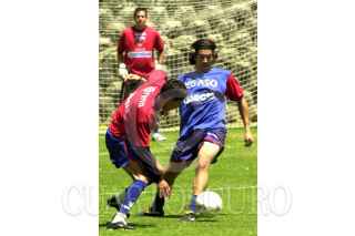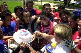 Al término del entrenamiento, los jugadores del Atlante festejaron el cumpleaños número 35 de su técnico, Miguel "El Piojo" Herrera, con un merecido pastelazo. FOTO: Pedro Mera/CUARTOSCURO.COM