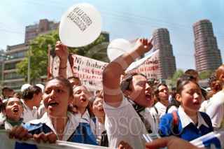 Estudiantes de escuelas primarias, secundarias y preparatorias del Estado de México, realizarón una marcha y mitin para protestar en contra de la guerra afuera de las oficinas de la Organización de las Naciones Unidas en nuestro país. FOTO: Gilberto Molina/CUARTOSCURO.COM