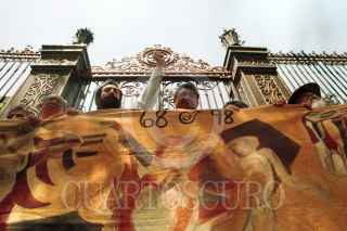 Miembros del Comite 68 se manifestaron afuera de la secretaria de Gobernación para protestar por el translado de los restos mortales de Jesús Reyes Heroles a la Rotonda de las Personas Ilustres. FOTO: Gilberto Molina/CUARTOSCURO.COM