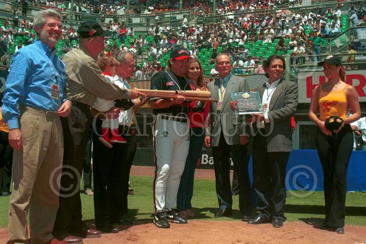 Roberto Méndez del equipo de estrellas mexicano se barre en segunda base para obteneer un safe ante las estrellas extranjeras. El encuentro se llevó a cabo en el Foro Sol. FOTO: David Bolaños/CUARTOSCURO.COM
