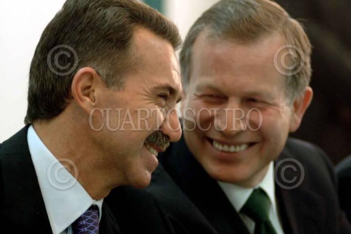 Roberto Madrazo y Miguel Angel Nuñez Soto, durante la reunión de trabajo de la comisión de temática y de dictamen de ideologia, del Partido de la Revolución Institucional. FOTO: Nelly Salas/CUARTOSCURO.COM