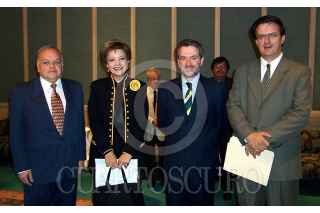 Los candidatos al gobierno del D.F. se reunieron dentro del marco del Dia de la Libertad para servir al projimo, donde cada uno presento parte de su proyecto politico. Alejandro Ordorica del PARM, Tere Vale del PDS, Santiago Creel del PAN y Marcelo Ebrad del PCD.
