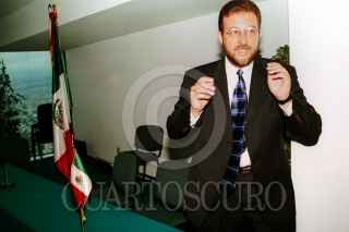 Juan Antonio Fernandez, actuario de Procampo, en conferencia de prensa dio a conocer las denuncias de productores zacatecanos por el desvio de recursos con fines electorales. FOTO:Oswaldo Ramírez/CUARTOSCURO.COM