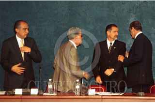El presidente Vicente Fox se retira al término de la reunión con los sectores productivos, que se llevo a cabo en la residencia oficial de Los Pinos. FOTO: Eunice Adorno/CUARTOSCURO.COM