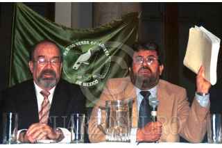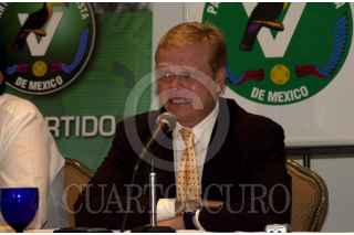 Leon Konik y Jose Luis Ameda, militantes del PVEM, se manifestaron a favor de la resolución que el Tribunal Federal Electoral adoptó hacia su partido en la que la dirigencia es desconocida por el TRIFE. FOTO:Iván Stephens/CUARTOSCURO.COM