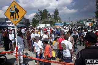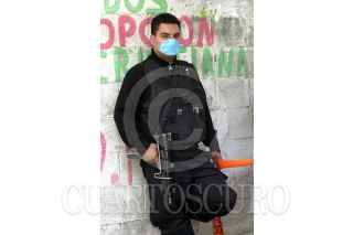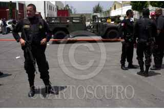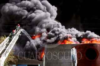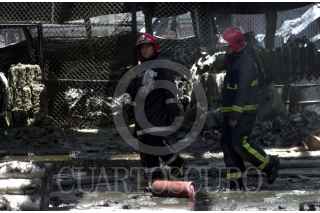 Un elemento de la policia Estatal descansa con su arma luego del operativo que esta corporación realizó para acordonar la zona industrial de Ciudad Neza, en donde se incendió una fabrica de pinturas. El saldo fue de dos personas intoxicadas y la completa pérdida del inmueble. FOTO: Juan Pablo Zamora/CUARTOSCURO.COM