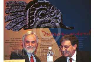 Enrique Semo Calev, secretario de cultura del gobierno del Distrito Federal y Luis Mier y Terán, rector general de la Universidad Autónoma Metropolitana, fueron algunos de los invitados a la inauguración del encuentro académico " El nacionalismo mexicano ayer y hoy". FOTO: Moisés Pablo/CUARTOSCURO.COM