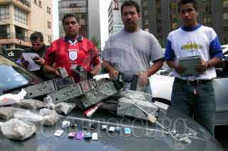Estos tres sujetos fueron aprehendidos después de una persecución por las Lomas de Chapultepec, tenían en su poder drogas y algunos aparatos electronicos. FOTO: Jorge Alvarado/CUARTOSCURO.COM