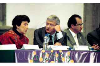 Raquel Sosa, el jefe de Gobierno Andrés Manuel López Obrador , René Bejarano, presentes durante el 50 Aniversario del Sufragio de la mujer en nuestro pais. FOTO: Ricardo Hernández/CUARTOSCURO.COM
