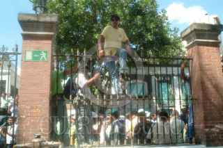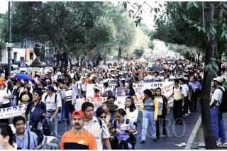 Profesores provenientes de Oaxaca y Chiapas se manifestaron a las afueras de la secretaria de Gobernación para exigir respeto a las escuelas normales rurales y la no privatización de la educación. FOTO: Nelly Salas/CUARTOSCURO.COM
