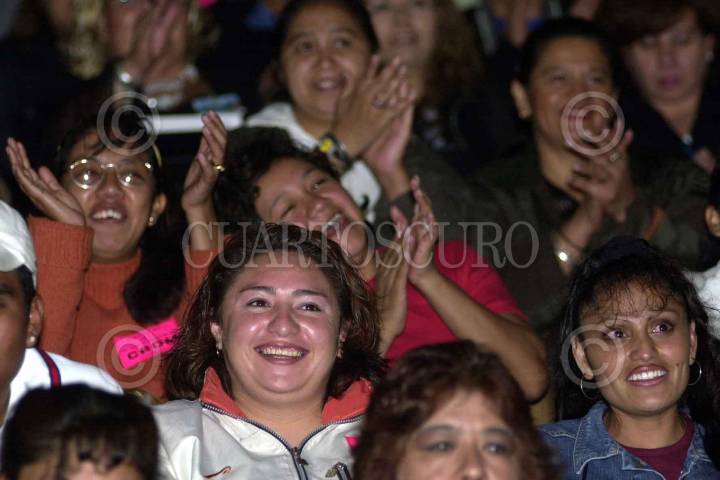 Carlos Abascal, secretario del Trabajo, platica con Mayela Trueba durante la inaguración del Primer Foro de la Mujer en la CROM. Ahi Abascal declaró que no debe haber una guerra de sexos en la disputa por la presidencia de 2006. FOTO: Juan Pablo Zamora/CUARTOSCURO.COM