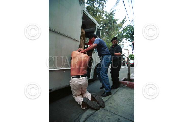 Los treinta detenidos en la calle de libertad, fueron trasladados a las oficinas de la PGR, para su investigación. FOTO: Moises Pablo/CUARTOSCURO.COM