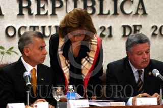 Rafaél Macedo de la Concha, Procurador General de la República, pide información a su asistente, durante su comparecencia ante senadores. A su Izquierda, el senador Jorge Zermeño. FOTO: Juan Pablo Zamora/CUARTOSCURO.COM