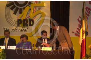 La perredista Lorena Villavicencio a su llegada a la celebración del 15 aniversario del llamamiento al pueblo por parte del PRD, en el Centro Cultural San Ángel. FOTO: Sandra Perdomo/CUARTOSCURO.COM