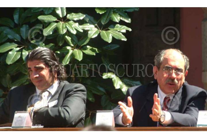 René Juárez gobernador del estado de Guerrero y Lázaro Cardenas Batel, gobernador de Michoacán, durante la ceremonia de la firman la convocatoria de la primera Convención Nacional Hacendaria. FOTO: Eunice Adorno/CUARTOSCURO.COM