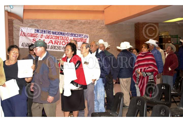 México D.F. 08 FEBRERO 2004.- Un ex braceros invita a sus compañeros a participar durante la Asamblea Nacional y así exigir al gobierno la devolución del fondo de ahorro que se creó con parte de los salarios que ganaron estando en Estados Unidos. FOTO: Sandra Perdomo/CUARTOSCURO.COM