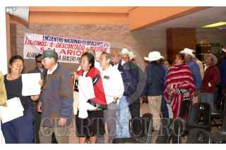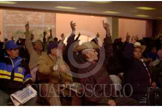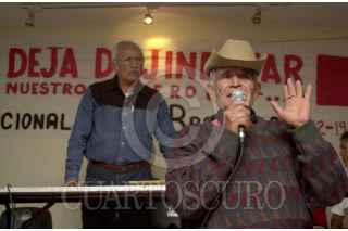 México D.F. 08 FEBRERO 2004.- Un ex braceros invita a sus compañeros a participar durante la Asamblea Nacional y así exigir al gobierno la devolución del fondo de ahorro que se creó con parte de los salarios que ganaron estando en Estados Unidos. FOTO: Sandra Perdomo/CUARTOSCURO.COM