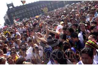 MEXDF08FEB2004.- Cientos de júvenes asistieron al zócalo capitalino para el festival del tambor en donde participaron grupos de Brazil, Senegal y México. FOTO: Eunice Adorno/CUARTOSCURO.COM