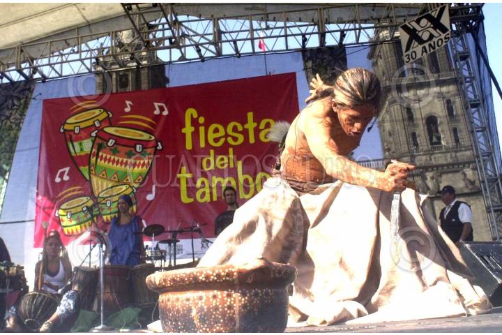 MEXDF08FEB2004.- Cientos de júvenes asistieron al zócalo capitalino para el festival del tambor en donde participaron grupos de Brazil, Senegal y México. FOTO: Eunice Adorno/CUARTOSCURO.COM