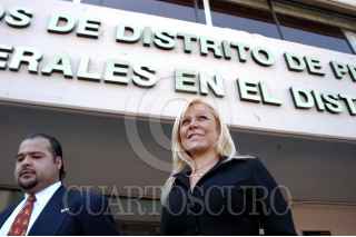México D.F. 09 Febrero 2004.- Odette Mubarak abogada de Carlos Romero Deschamps le avisa a su cliente que fue pospuesta su comparecencia en el juzgado, Por cuarta ocasión Romero Deschamps evade su presentación ante el juez. FOTO: Germán Romero/CUARTOSCURO.COM