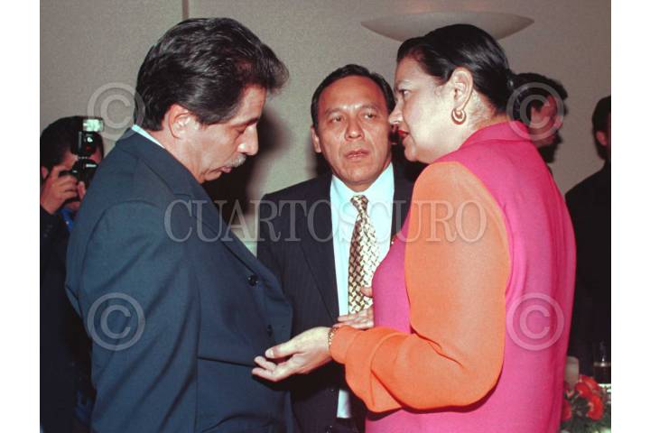 El tabasqueño Arturo Nuñez se dio tiempo para asistir al aniversario de "La Entrevista", es recibido por la lider del PRI Dulce Maria Sauri. FOTO:Oswaldo Ramírez/CUARTOSCURO.COM