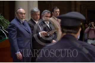 México D.F. 09 FEBRERO 2004.- Andrés Manuel López Obrador, jefe de Gobierno, entrega reconocimiento a la viuda de un policía que murió en el cumplimiento de su deber, a la cual se le ofreció apoyo por parte del gobierno. FOTO: Sandra Perdomo/CUARTOSCURO.COM