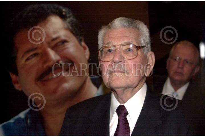 México, D.F. 10 FEBRERO 2004.- Francisco Labastida (PRI), Alfonso Durazo, secretario particular del presidente Fox, y Luis Colosio, durante el 54 aniversario del nacimiento del condidato presidencial priísta. FOTO: Sandra Perdomo/CUARTOSCURO.COM
