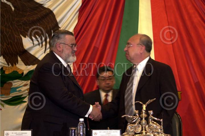 México, D.F. 11 FEBRERO 2004.- La diputada Silvia Hernández (PRI) y Manuel Camacho Solis (PRD), secretario, durante la sesion permanente de la Cámara de Diputados. FOTO: Sandra Perdomo/CUARTOSCURO.COM
