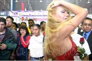 México, D.F., 12FEBRERO2004.- Un travestí muestra su belleza a los expectadores de la Expo Sexualida, que se realiza en el Palacio de los Deportes del 12 al 15 de Febrero. FOTO: Moisés Pablo/CUARTOSCURO.COM