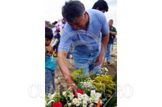 Piedras Negras, Coahuila 08 ABRIL 2004.- El señor Antonio Hernández se despide de su hija Adriana al mismo tiempo que era enterrado su hijo Antonio Hernández Hutrón, muertos durante las inundaciones pasadas en esta ciudad fronteriza. FOTO: Jorge López/CUARTOSCURO.COM